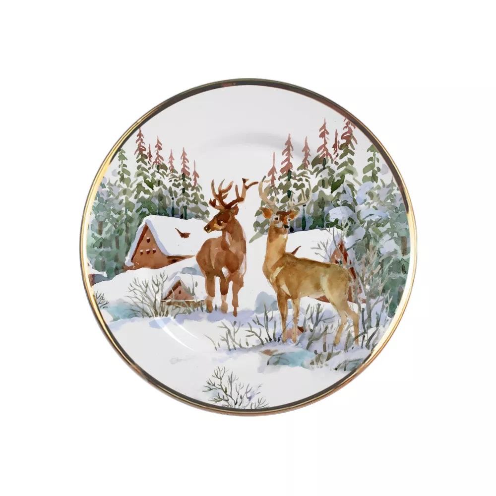 Plato llano para postre en cerámica con proceso de decoración digital, motivo navideño y orillo dorado. 20.5 cms diámetro. Multicolor como la imagen. CX6-CX24