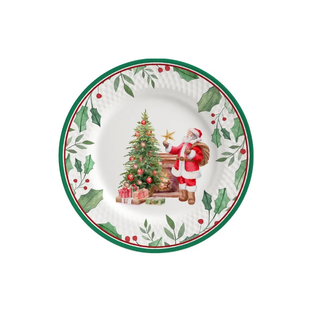 Plato llano para postre en cerámica con proceso de decoración digital, sobre base blanca, motivo de Papá Noel. 20.5 cms diámetro. Multicolor como la imagen. CX6-CX24