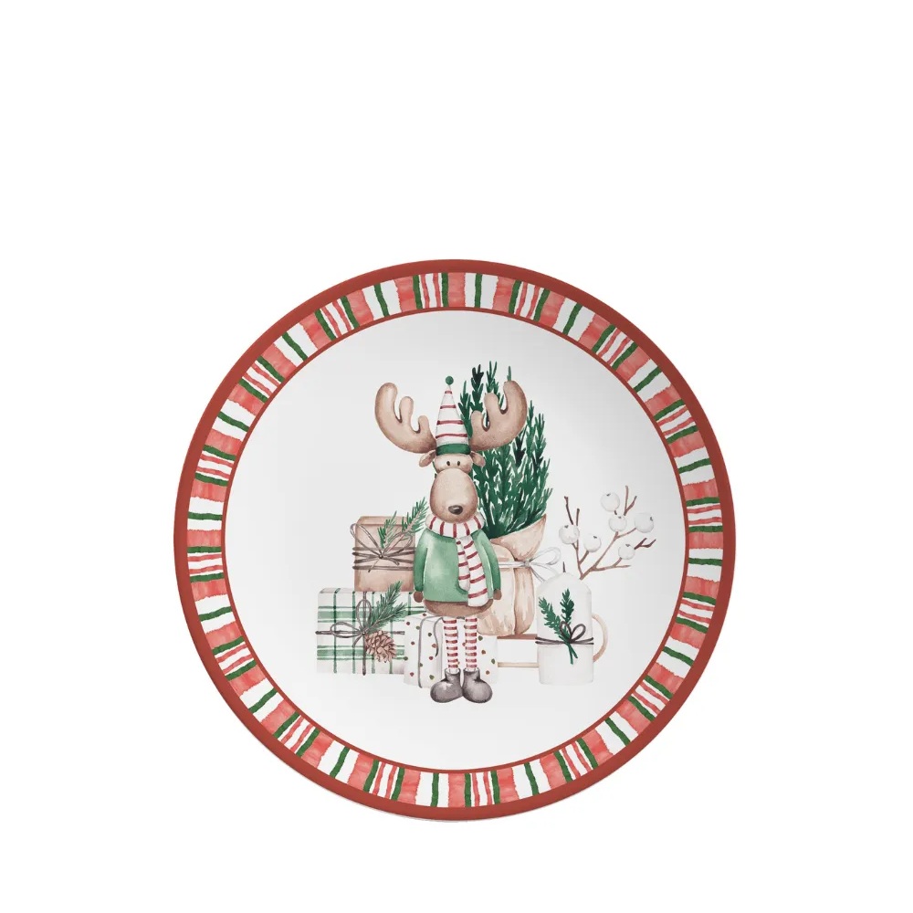 Plato llano para postre en cerámica con proceso de decoración digital, sobre base blanca, motivo navideño. 20.5 cms diámetro. Multicolor como la imagen. CX6-CX24