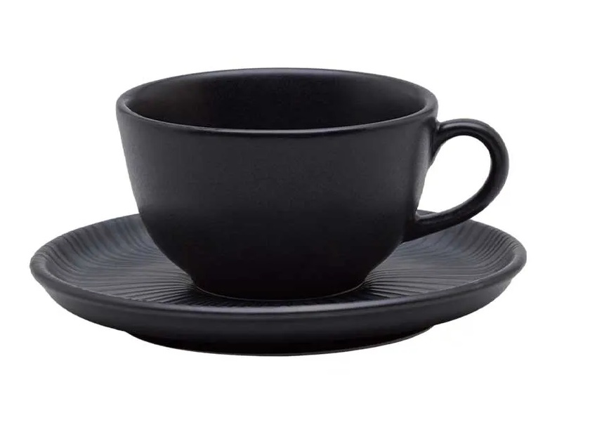 Set de taza con plato en cerámica, capacidad 200 ml (7 onzas) – Plato de 14 cms diámetro, tazade 9 cms diám x 5.5 cms alto Negro. SET-CX12SETS