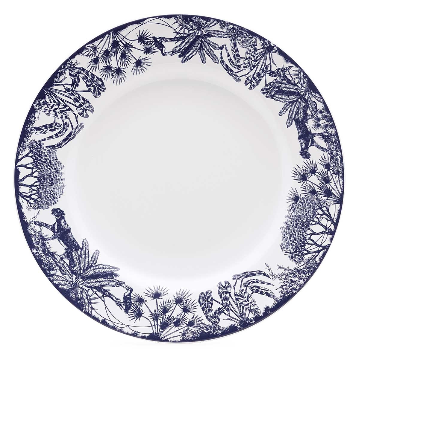 Plato llano para seco en porcelana con diseño en el borde. 28 cms diámetro. Blanco/azul. CX12