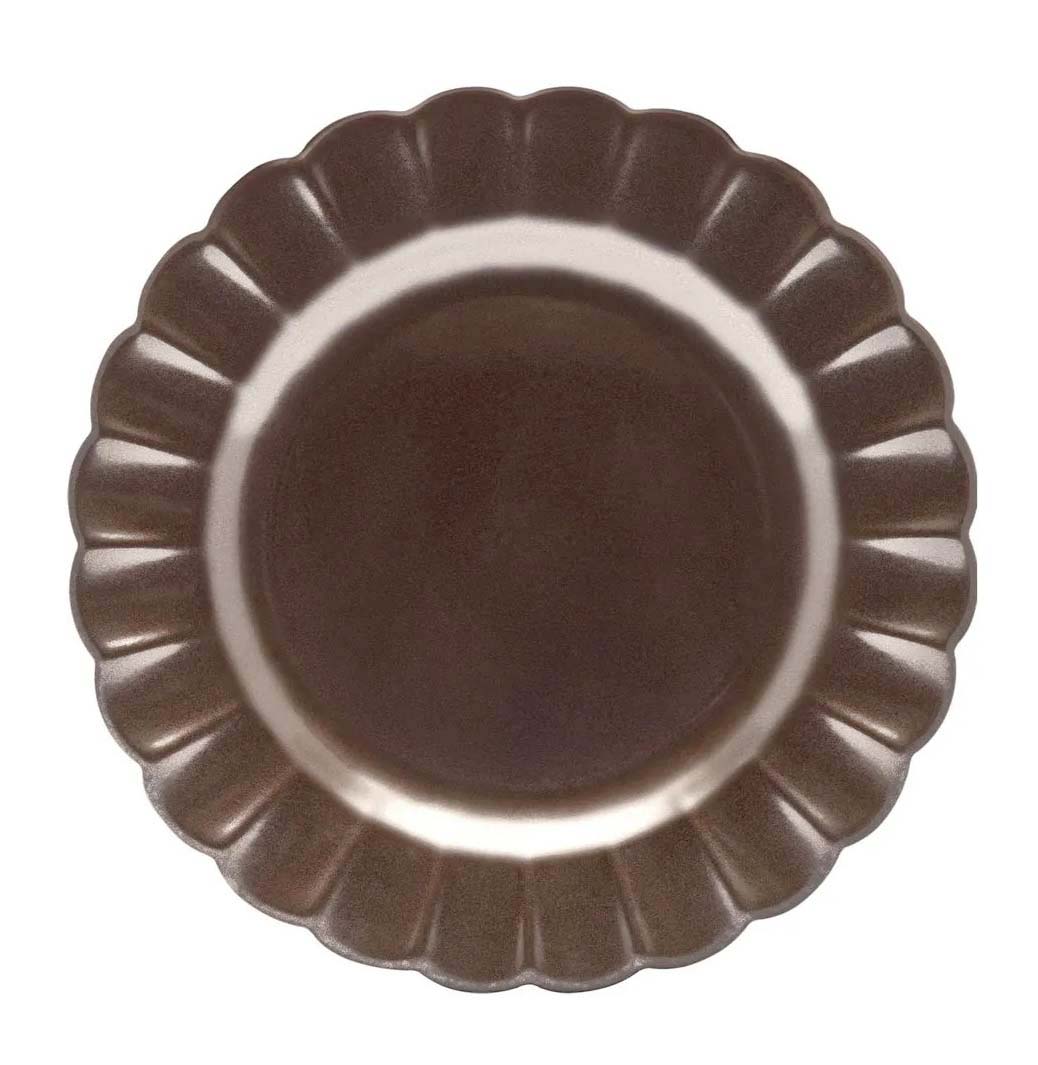 Plato llano para seco en porcelana, esta línea presenta piezas extremadamente finas decoradas con pliegues en relieve inspirados en los pétalos de las flores. 27.5 cms diámetro. Marrón metalizado (Mocha Mousse). CX12