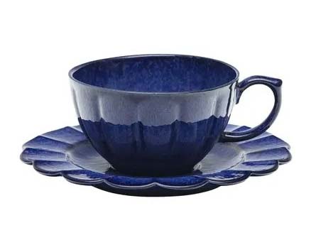Set de taza con plato en porcelana capacidad de la taza 220 ml, esta línea presenta piezas extremadamente finas decoradas con pliegues en relieve inspirados en los pétalos de las flores. Plato de 16 cms diámetro – Taza de 10 cms diámetro x 6 cms alto. Azul oscuro. SET-CX12SET